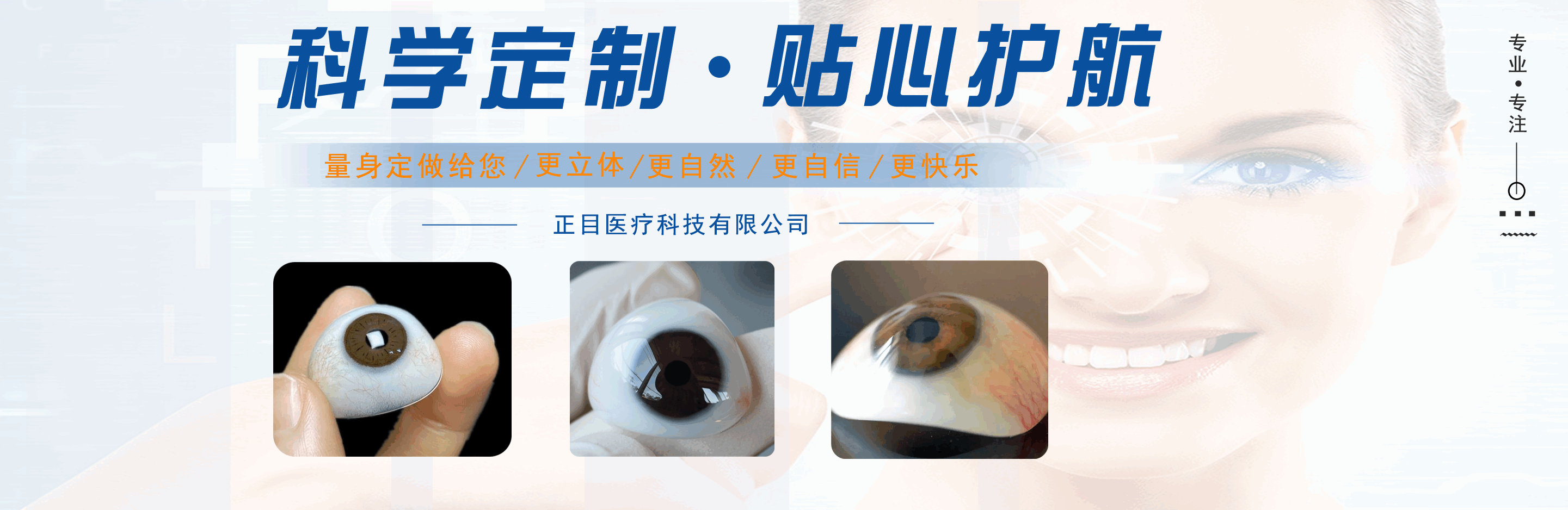 正目醫(yī)療科技有限公司致力于為用戶(hù)提供義眼,義眼片定做哪家好,假眼多少錢(qián),換一個(gè)義眼大概需要多少錢(qián),假眼費(fèi),義眼片定做醫(yī)院哪家最好,義眼機(jī)構(gòu),是集義眼定制、保養(yǎng)、咨詢(xún)?yōu)橐惑w的綜合性義眼定制企業(yè)?! —?dú)創(chuàng)的義眼工藝結(jié)構(gòu),根據(jù)仿生物學(xué)原理,采用進(jìn)口醫(yī)用植入材料:高分子材料、無(wú)毒素、性能穩(wěn)定、堅(jiān)固耐用)、聚甲基丙乙烯阝-羥乙酯HEMA材料(軟性親水性材料),結(jié)合獨(dú)特的義眼個(gè)性化佩戴技術(shù),按佩戴者健眼的形態(tài)、角膜、虹膜、及瞳孔的大小、色澤、血管紋理和脂肪分布,設(shè)計(jì)制作。擁有超薄、質(zhì)輕、光滑、親水透氧、佩戴舒適和高逼真的特點(diǎn)。為保證佩戴效果,提高佩戴壽命,我公司為佩戴者終身免費(fèi)提供義眼的上光和保養(yǎng)等人性化技術(shù)服務(wù)。愛(ài)美之心,人皆有之。愿我們精湛的技術(shù),使您倍增信心。...
